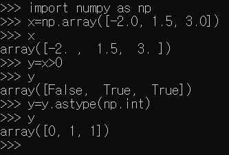 계단함수를 코드로 표현하면 다음과 같습니다.