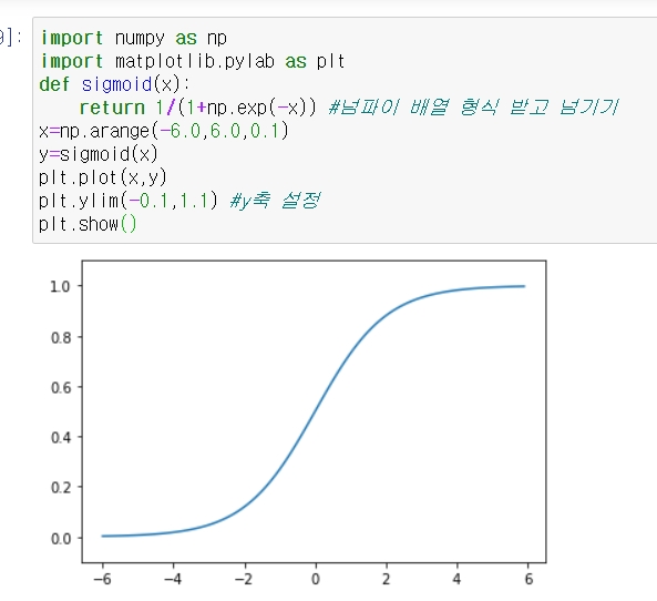 시그모이드 함수를 파이썬으로 코드를 작성하면 다음과 같습니다.