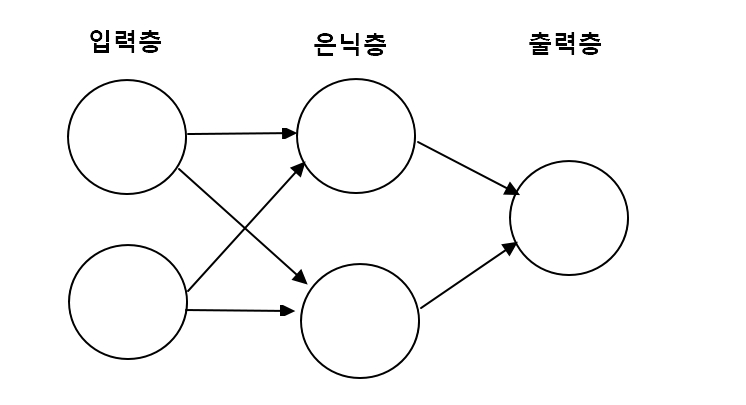 이 그림에서 0층이 입력층, 1층이 은닉층, 2층이 출력층이 됩니다.