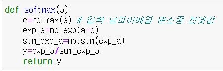 개선된 소프트맥스함수를 코드로 표현하면 다음과 같습니다.