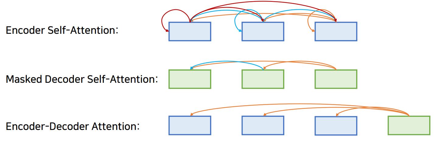 (transformer에서는 attention이 self-attention(encoder ver, decoder ver), encoder-decoder attention 3가지가 있음을 고려)