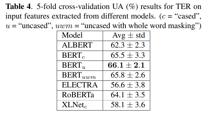 - 서로 다른 Transformer-based models로부터 추출된 input features를 이용하여 TER model을 학습시킴