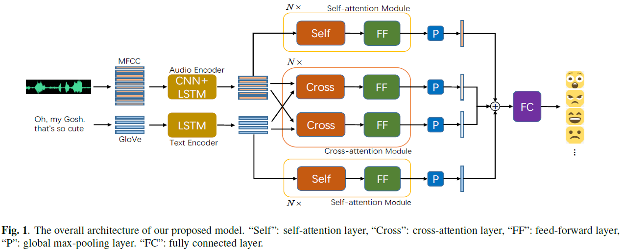 - cross-attention module과 병렬적으로 배치하여 self-attention module을 놓아서 audio와 text안의 intra-modal interaction을 잡도록 목표를 둠
