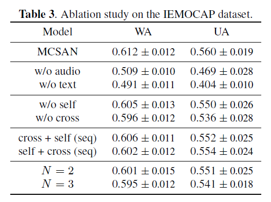 - 이러한 모델 덕분에 MCSAN은 audio와 text의 inter-과 intra-modal 상호작용을 명백히 모델링 가능