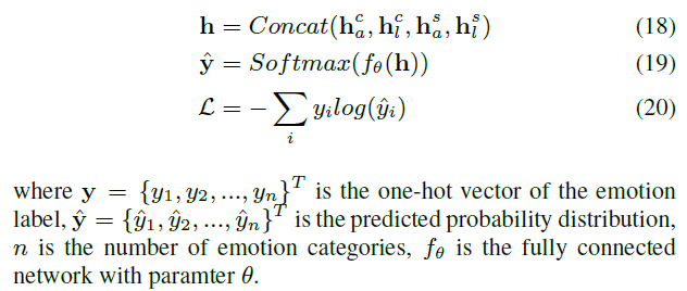 - 마지막으로 이 modules의 outputs는 concatenated되고 emotion prediction을 위한 fully connected classifier에 보내짐