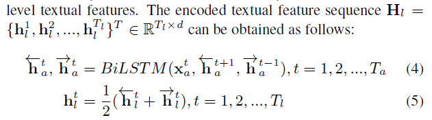 - 주로 $T_l$의 수가 적다는것을 고려하여 오직 BiLSTM layer을 word-level textual features를 encode하는데 사용