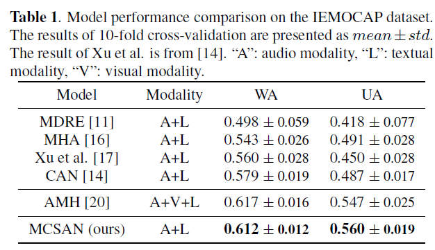 - MCSAN이 acoustic과 textual 정보만 사용했지만 AMH보다 더 좋은 성능을 냄