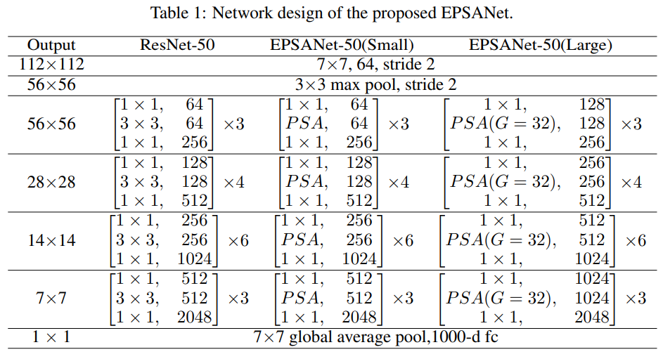 - Be developed by stacking ResNet-style EPSA blocks