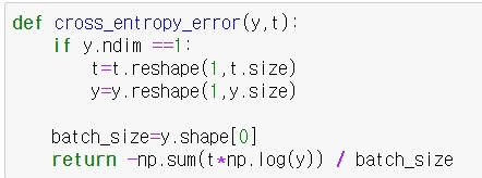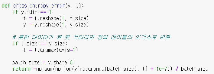 배치용 교차 엔트로피 오차를 구현한 코드는 아래와 같습니다.