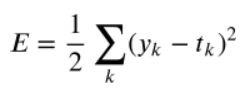 y는 신경망의 출력(신경망이 추정한 값), t는 정답 레이블, k는 데이터의 차원수를 나타냅니다.