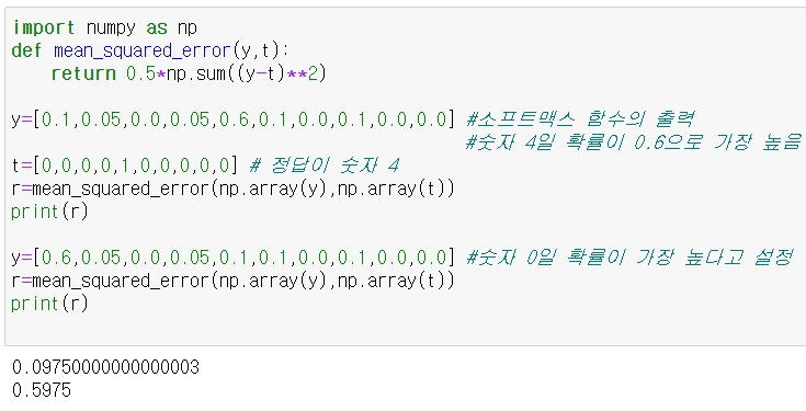 평균 제곱 오차를 코드로 나타내면 다음과 같습니다.
