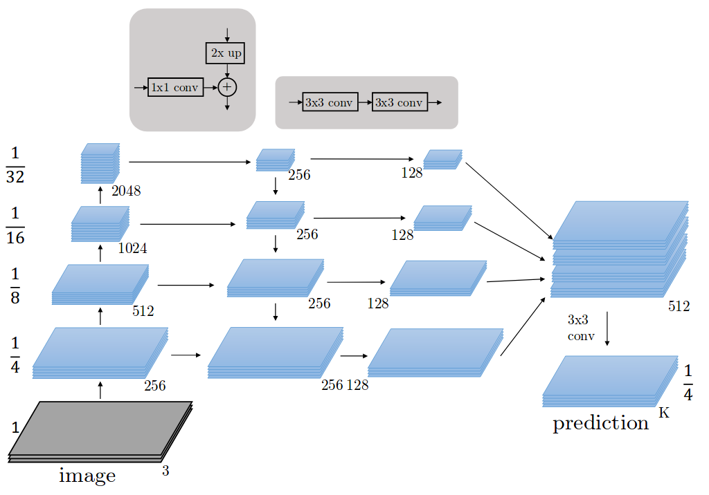 - 반면에, pointwise convolution의 outputs를 2번 upsample 하여, low-level features의 해상도에 매칭 시킴