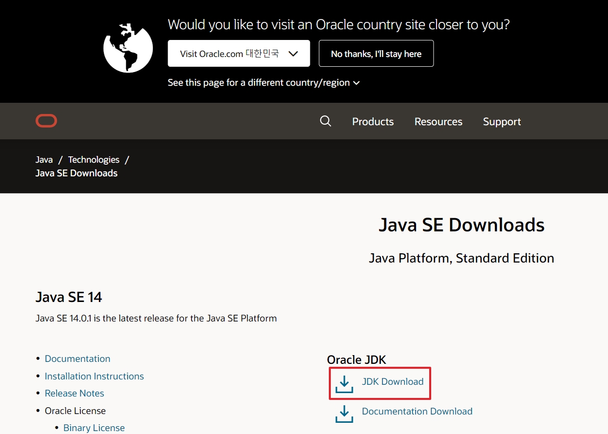 오라클 홈페이지에서 JAVA SE를 설치합니다.