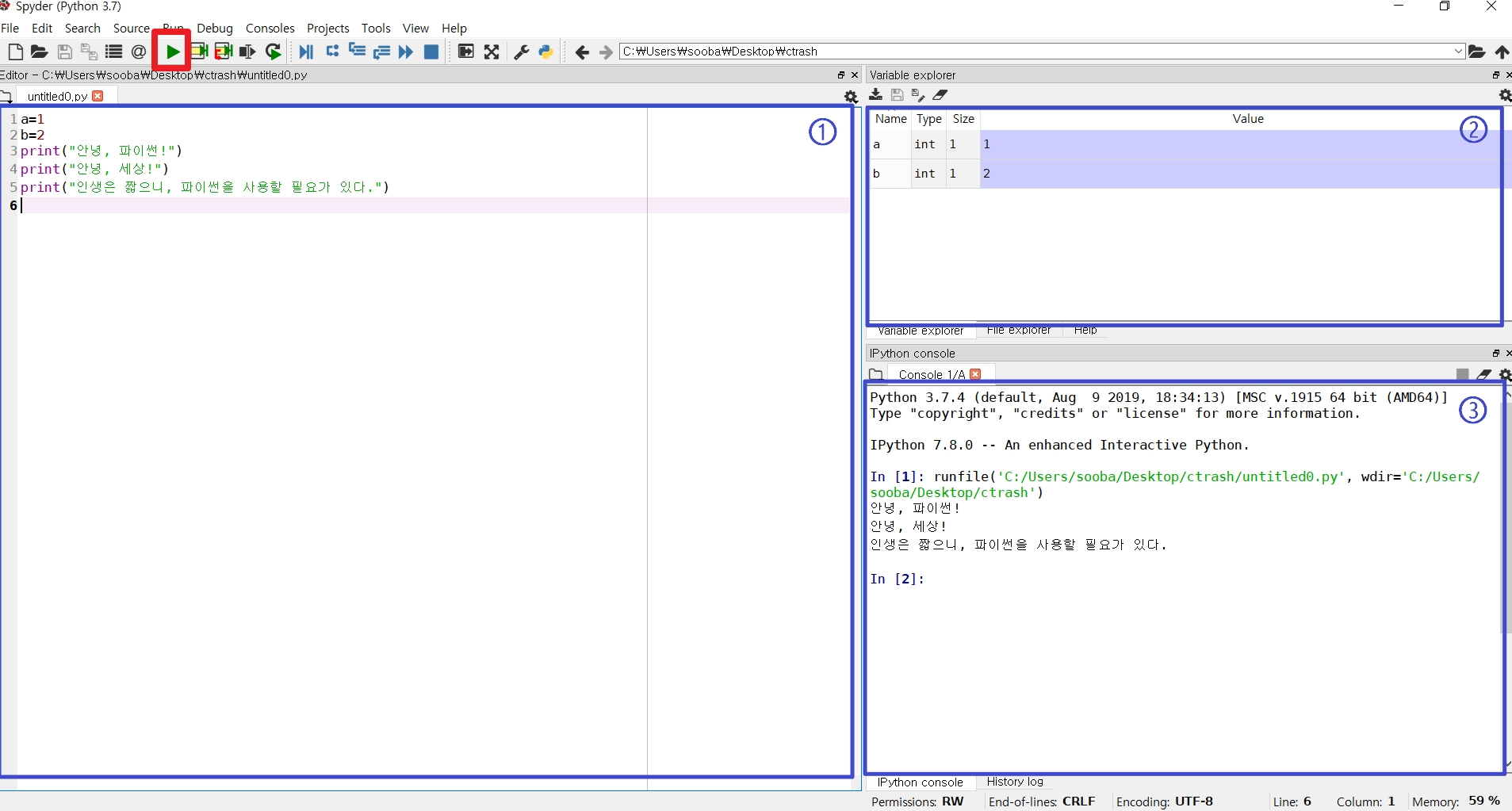 이렇게 여러 가지 파이썬 IDE를 활용하여 파이썬을 실행시킬 수 있습니다.