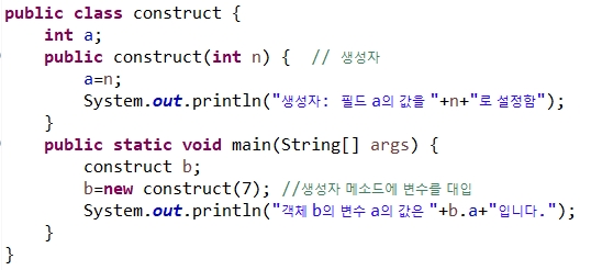 this.a의 this의 의미는 construct 클래스를 뜻하는 것이므로 this.a는 construct 클래스의 멤버 변수를 뜻합니다.