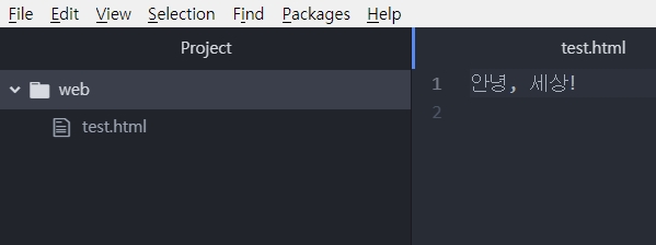 우선 간단하게 작동이 잘되는지 확인하기 위해서 html 파일을 하나 생성한 후 코드에 hello world