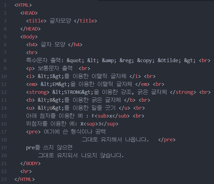 | <CITE> </CITE> | 자료의 인용, 문자를 이탤릭체로 보여줌 |