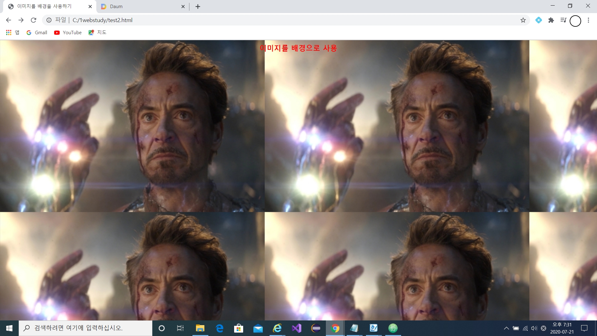 위의 BGCOLOR을 blue 색상으로 지정했는데 나오지 않는 이유는 이미지 파일을 배경화면으로 사용했기 때문입니다.