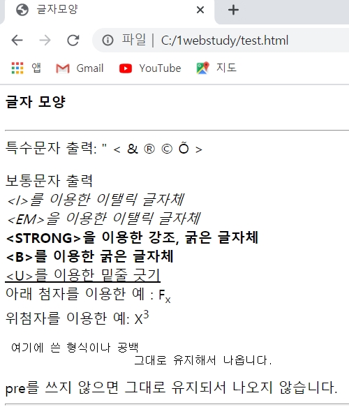 브라우저에서 태그 안에 표시한 내용을 그대로 볼 수 있음