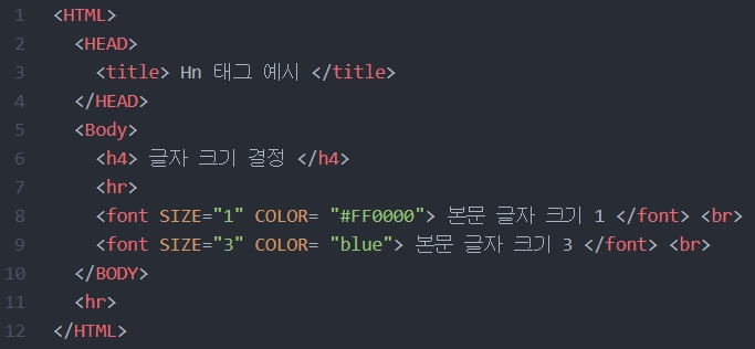 <FONT SIZE ="크기" COLOR="색 번호"> ... </FONT>