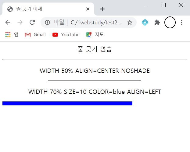 WIDTH : 수평선의 길이 (픽셀단위 또는 % 단위 사용)