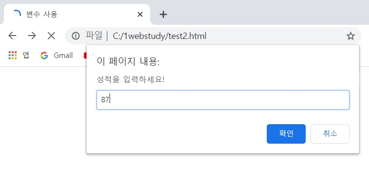 var grade=eval(prompt("성적을 입력하세요!")); //prompt는 입력창이 나오게 하는 메소드
