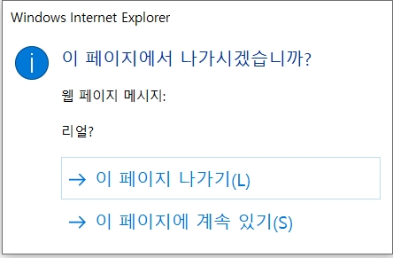 <BODY onLoad="alert('전화번호를 입력하세요');" onBeforeUnload="return '리얼?';">
