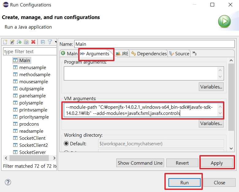 javafx 모듈이 해당 프로젝트의 구성으로서 구체적으로 실행시키기 위해서 이클립스를 설정을 해야 합니다.