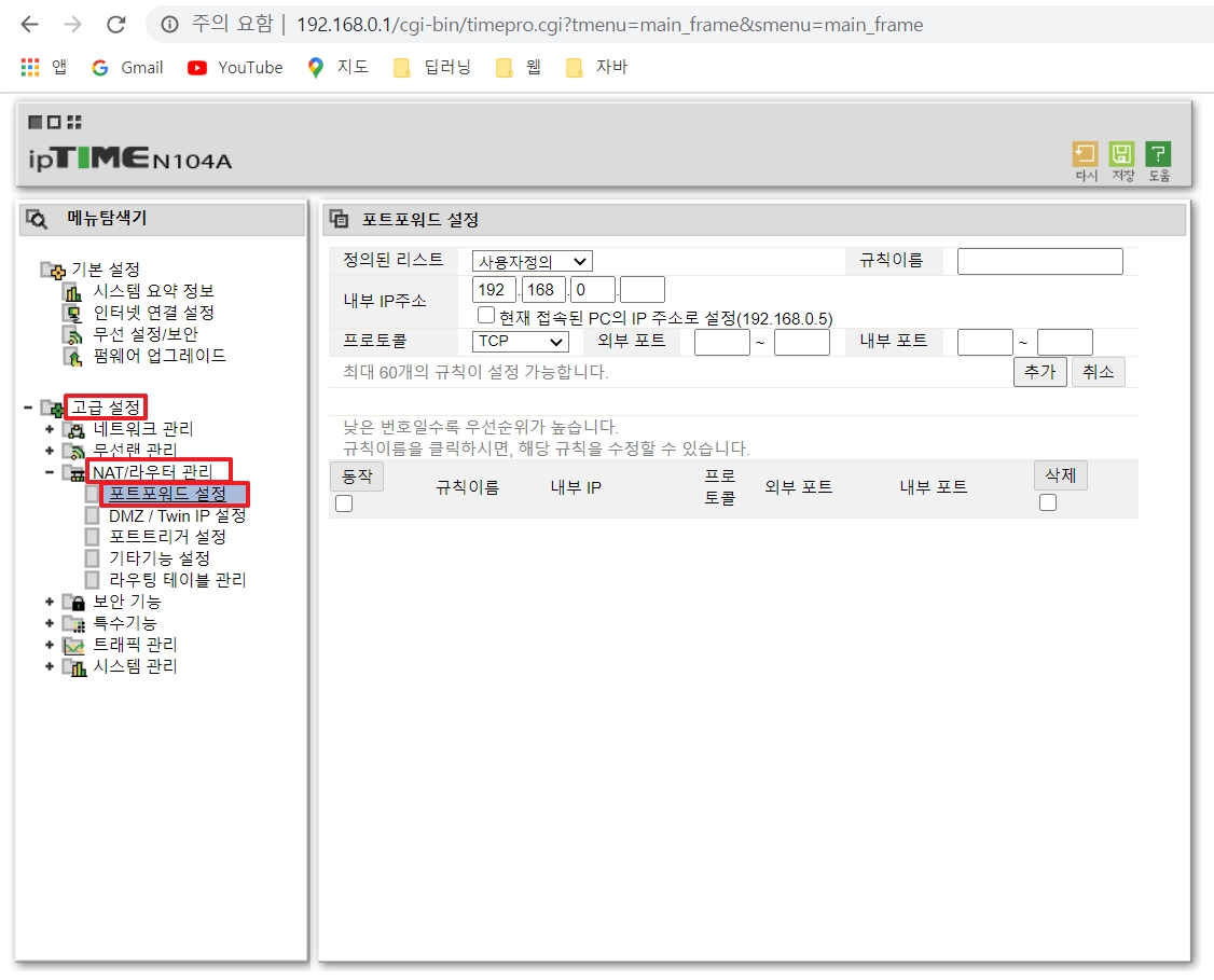 저는 참고로 iptime 공유기를 사용하고 있습니다.