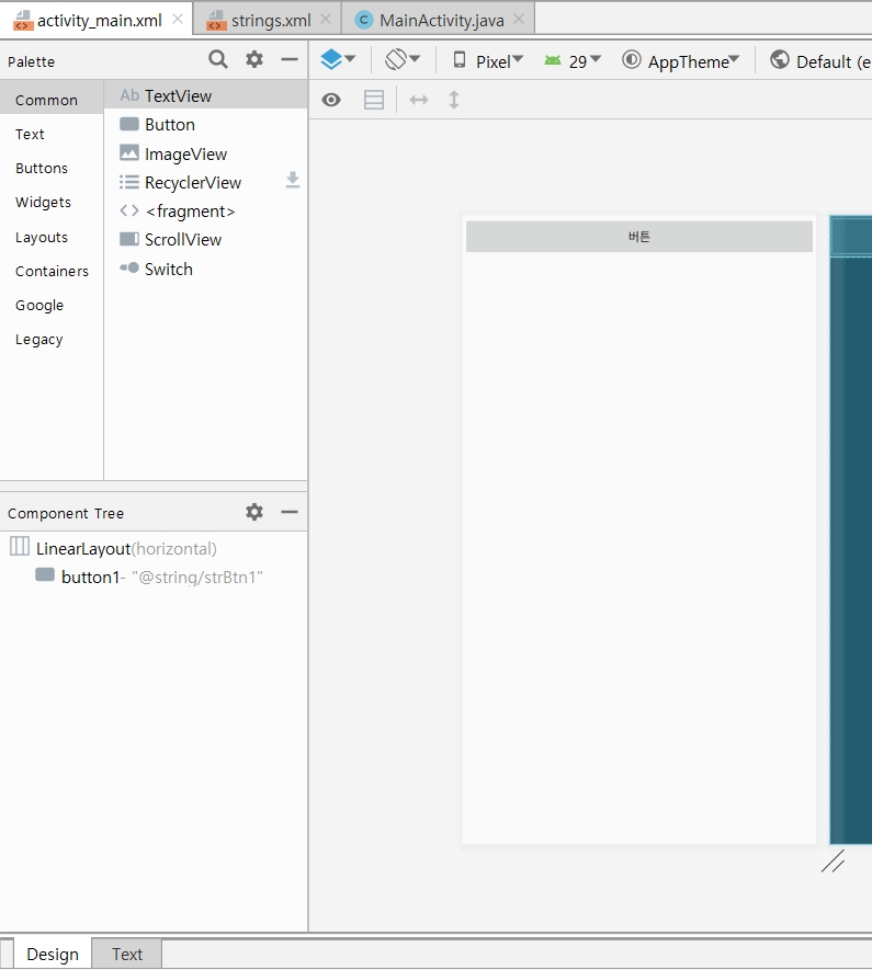 activexml_main.xml의 [Design] 탭을 누르면 잘 적용된 것을 확인할 수 있습니다.