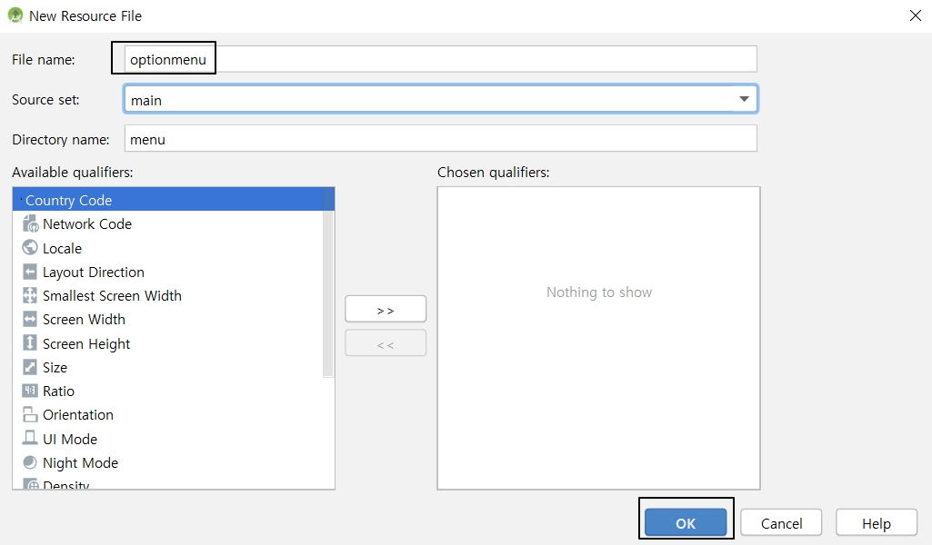 옵션 메뉴를 사용하는 방법에는 메뉴 XML 파일을 생성 후 Java에서 호출하는 방법과 XML 없이 Java코드만 메뉴를 생성하는 방법이 있습니다.