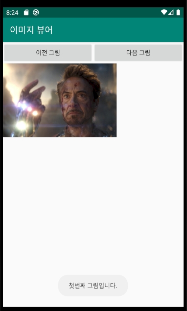 Toast.makeText(getApplicationContext(), "첫번째 그림입니다.", Toast.LENGTH_SHORT).show();
