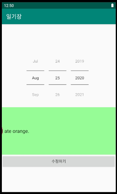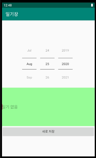 다음은 내장 메모리에 데이터를 저장해서 특정 날짜에 작성한 글이 저장되게 하는 예제입니다.