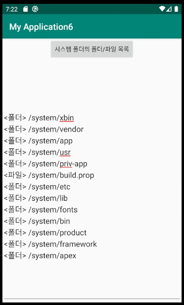android:text="시스템 폴더의 폴더/파일 목록" />