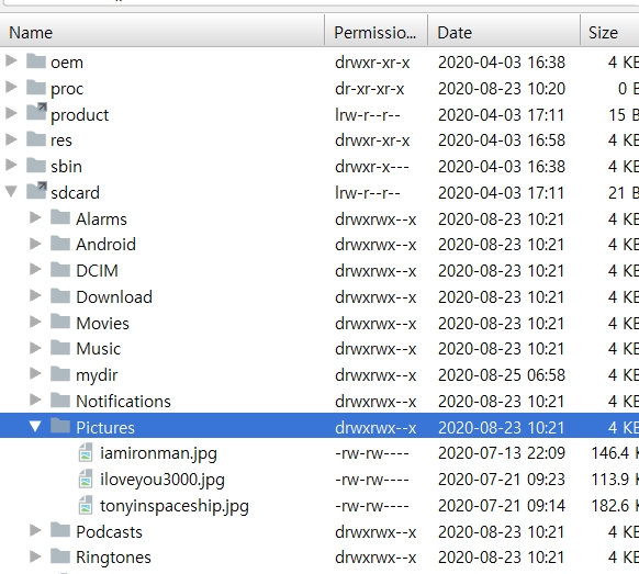 그다음 미리 사용할 사진들을 [Device File Explorer]에서 /sdcard/pictures 폴더에 적당한 이미지 파일을 upload 해둡니다.