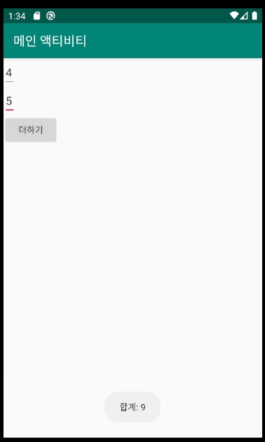 메인 액티비티가 실행되었으므로 다음과 같이 나옵니다.