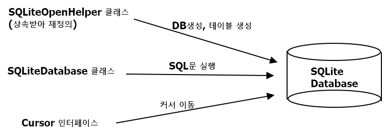 모바일 환경에서 동작하는 SQLite는 관계형 DBMS의 단점을 극복하기 위해 동시 접근이나 대용량 데이터 관리에 제한을 두고 있지만 RDBMS의 표준 SQL이나 개념은 동일하게 적용됩니다.