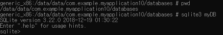 sqlite3 myDB // myDB는 데이터베이스 이름