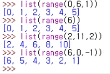range 함수 - 범위를 지정한 증가, 감소 규칙에 따라서 범위를 지정해주는 함수