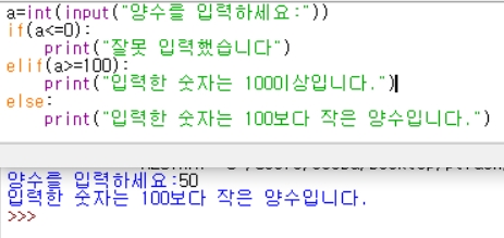 if문의 조건이 참이 아니면 elif문의 조건을 따져서 확인하고 elif문의 조건이 참이 아니면 else함수에 입력한 코드를 실행합니다.