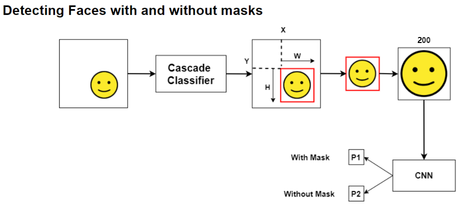 어디를 가든 마스크 미착용 시 출입 불가하며, 이를 사람이 일일이 확인하기에는 번거롭고 효율적이지 못하다고 생각하여 사람들이 마스크를 착용하였는지 안하였는지 판단하는 마스크 식별 모델을 만들어서 카메라로 자동으로 인식하는 시스템을 만들게 되었습니다.