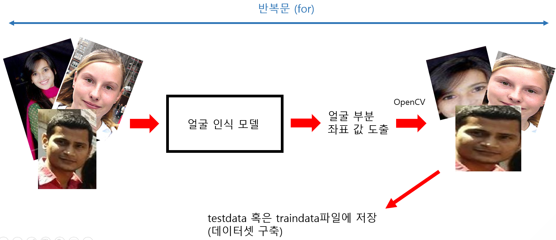 다음과 같은 과정에 의해 얼굴 부분만 추출한 데이터들을 얻을 수 있습니다.