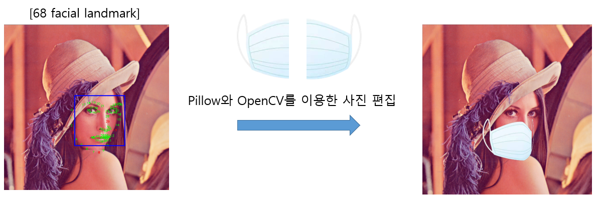해당 프로젝트를 구현하기 위해서 마스크를 쓴 사진과 쓰지 않은 사진들이 필요한데 마스크를 쓰지 않은 사진은 일반 얼굴 사진들이기 때문에 어렵지 않게 구할 수 있지만 마스크를 착용한 사진들은 직접 촬영하거나 수집하기 어렵다고 판단하였습니다.