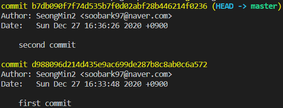 알아두어야 할 점은 git log 명령어는 현재 branch 정보만 가져온다는 것을 알아두어야 합니다.