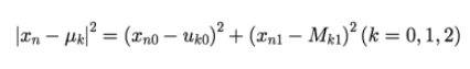 클러스터의 수 K를 정하고 중심벡터 μ로 클러스터의 중심 위치를 적절하게 설정합니다.