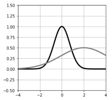 a는 함수의 크기를 제어하는 매개변수지만, 가우스 함수에서 확률 분포를 나타나는 경우에는 다음과 같이 설정합니다.