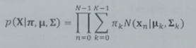 이를 해석하자면 'X라는 데이터들에 대한 발생할 확률은 π ,μ ,Σ 의 값에 따라 결정이 되는데 이때의 가능도는 다음과 같다.'라고 해석하면 됩니다.