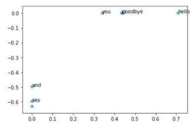 차원 축소를 하여 최대한 의미를 보존해주는 두 개의 축 기준으로 나타내어진 데이터 좌표들을 가지고 ppmi를 표현해주었다고 생각할 수 있습니다.
