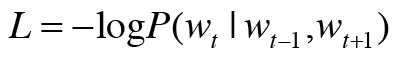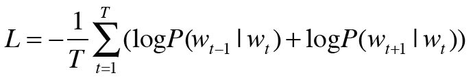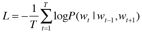 이 식을 이용하여 CBOW 모델의 손실함수를 나타낼 수 있습니다.