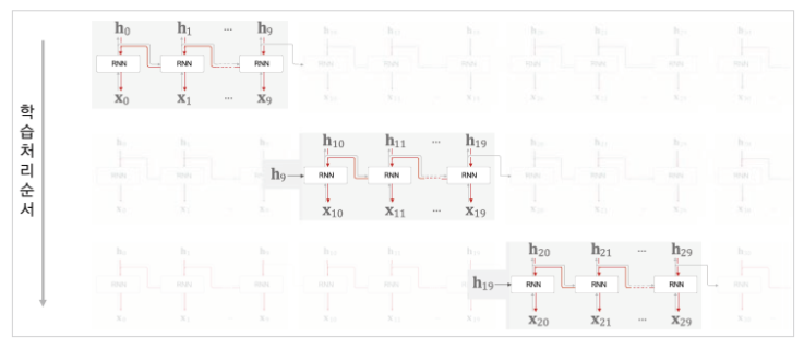 위의 큰 시계열 데이터에 대한 일반적인 역전파에 문제가 있기 때문에